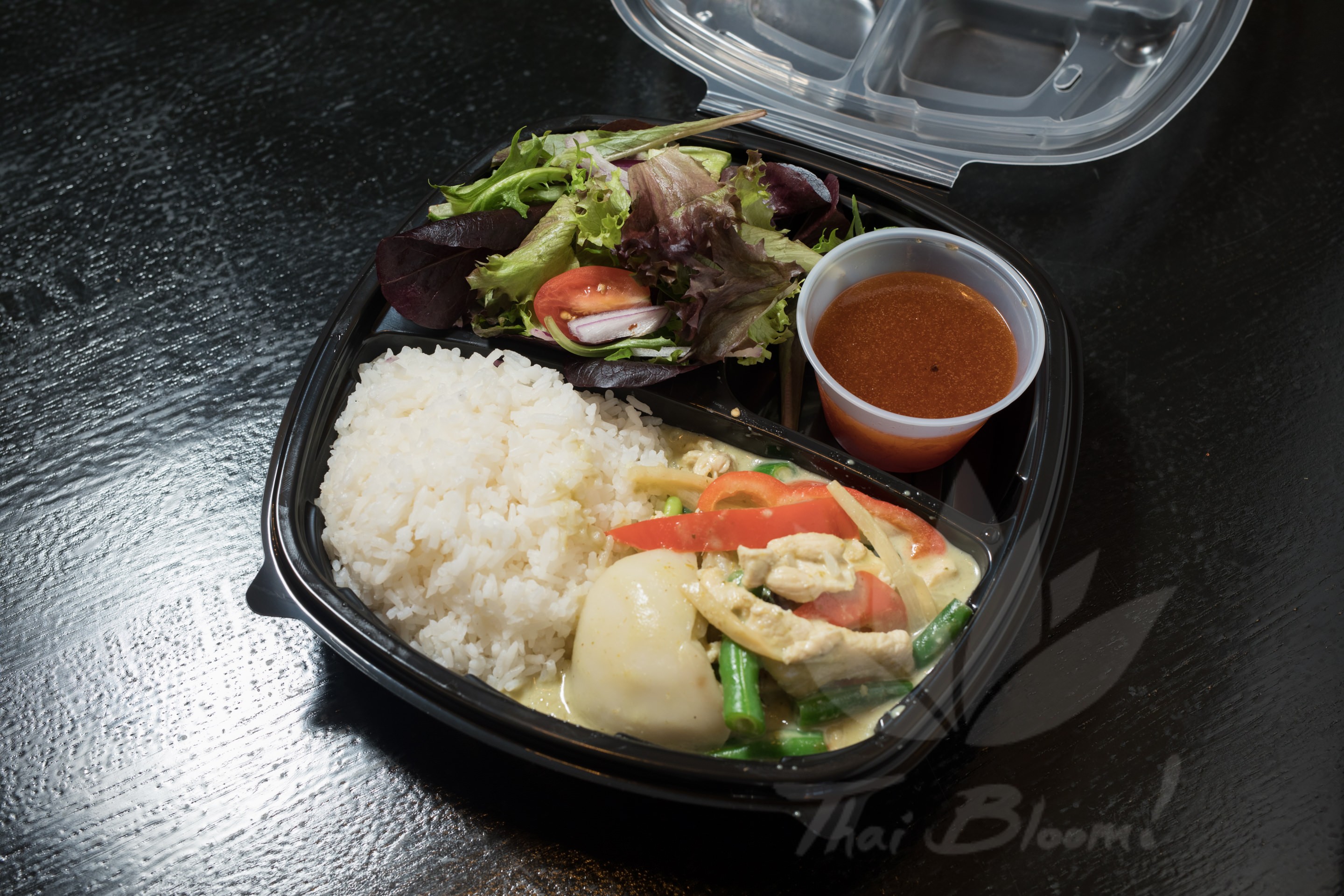 Our food cart features uniquely delicious dishes previously offered only as limited seasonal cial dishes include scrumptious authentic Thai recipes such as crispy Thai Katsu Chicken, grilled Salmon Green Curry, Crispy Pork, and Hainanese Chicken Rice. Side dish choices (free with every signature menu item) are Veggie Spring Roll, Chicken Potsticker, Fried Tofu, Chicken Satay, or Green Salad.