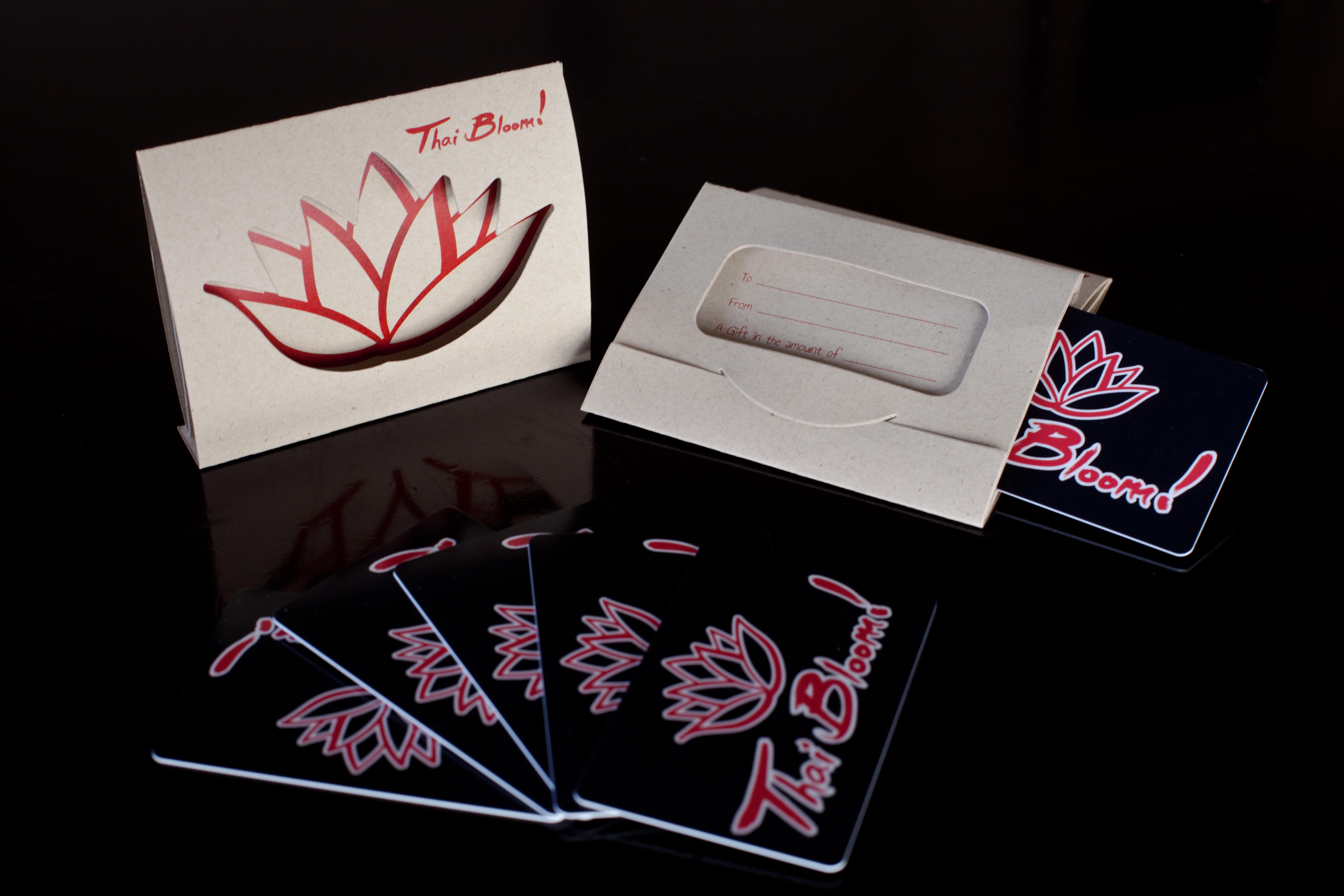 Give the gift of Thai Bloom! Choose a value from 25-500$ and we will send a gift card to the address that you provide. Thai Bloom! gift cards are rechargeable and can be used at any of our locations.