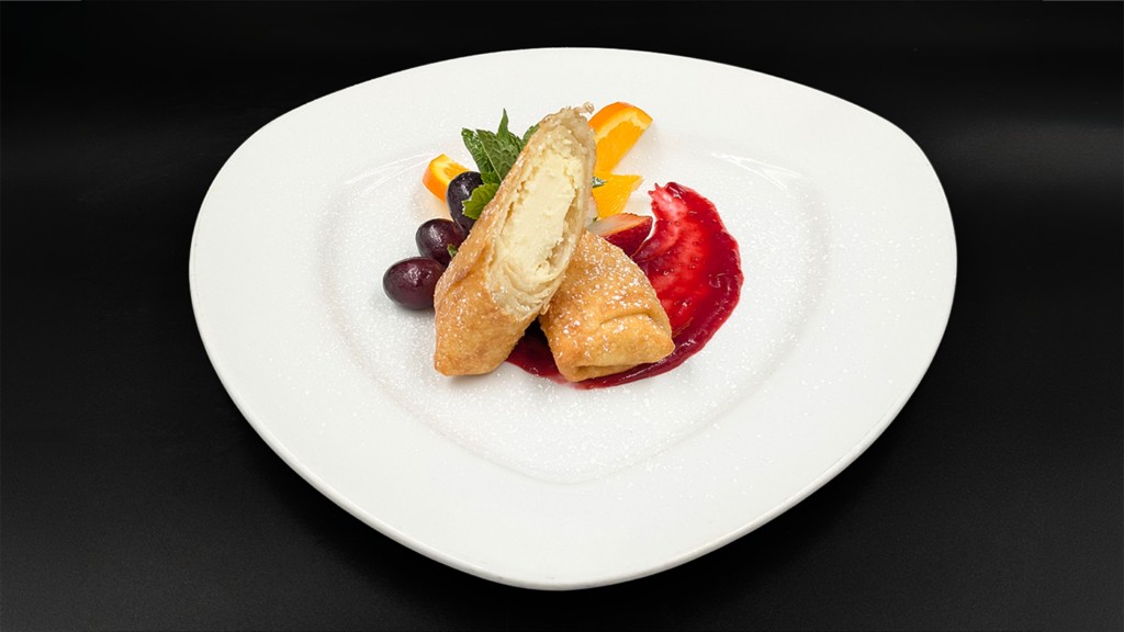 Fried Cheesecake Rich, smooth cheesecake with a tangy finish, wrapped in a flaky pastry tortilla and fried golden.